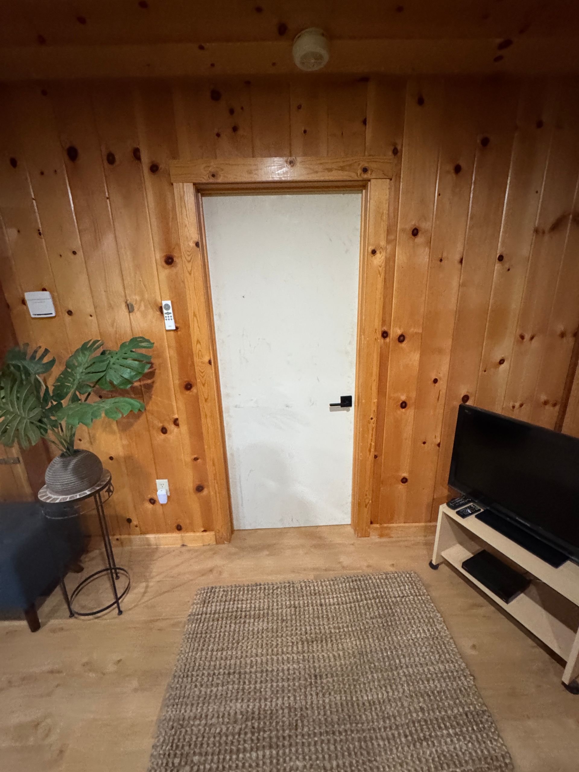 The entry door has been successfully replaced as part of the final stage work. Protective plywood has also been installed over the door to prepare for anticipated weather conditions and ensure the area remains secure.