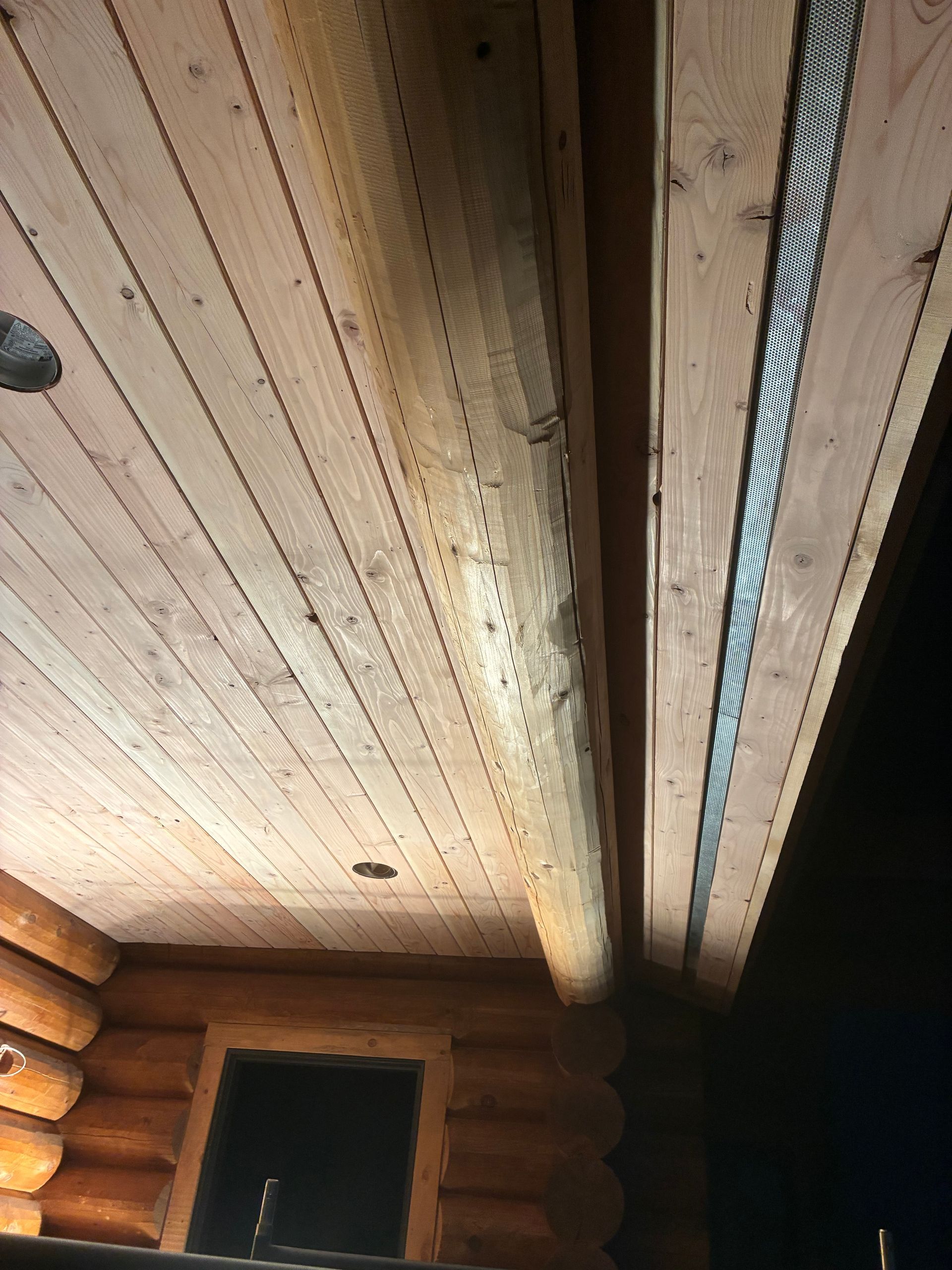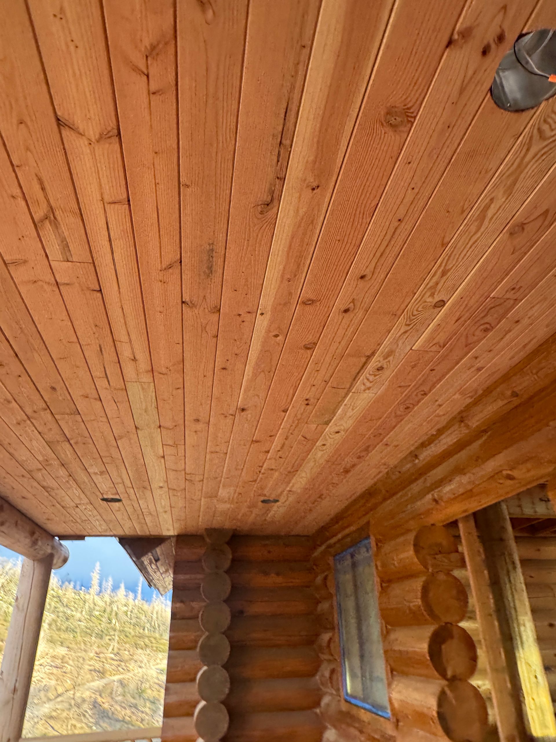 Windows and doors were carefully uncovered, sanded, and refined. Interior surfaces, including butt ends and lumber marks, were smoothed and finished to maintain a clean, polished look.