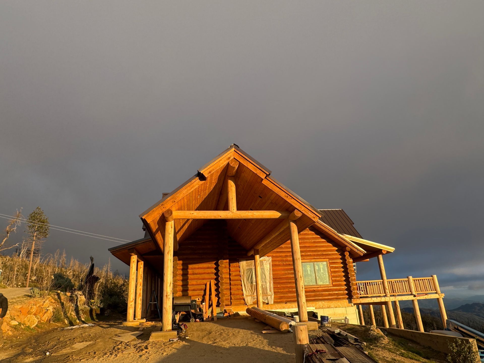 | Scope : | Comprehensive log cabin construction including exterior staining, interior finishing, stair installation, and detailed structural work |