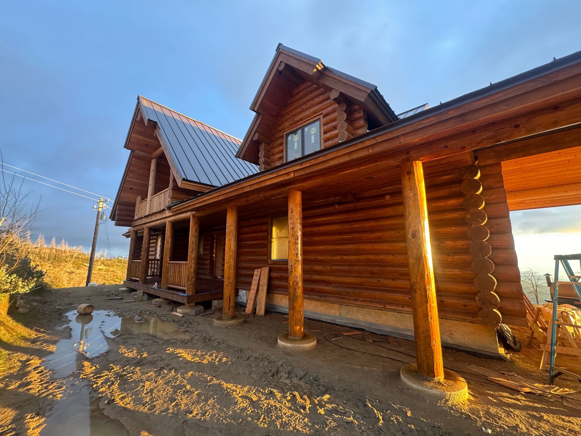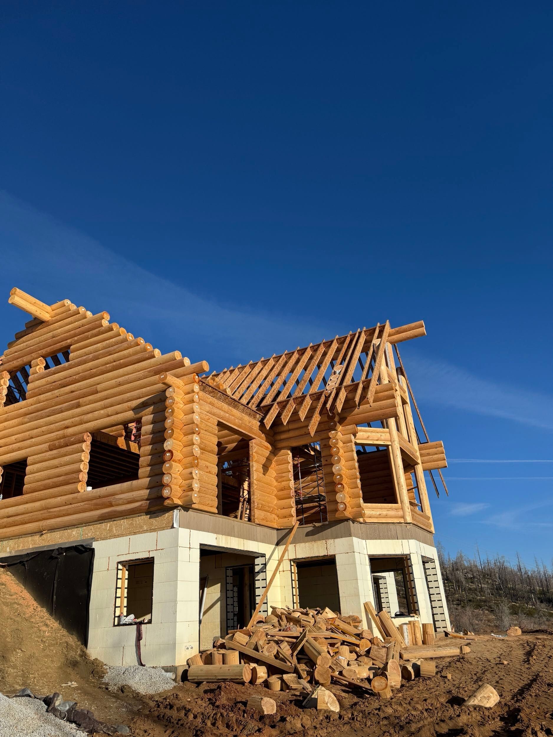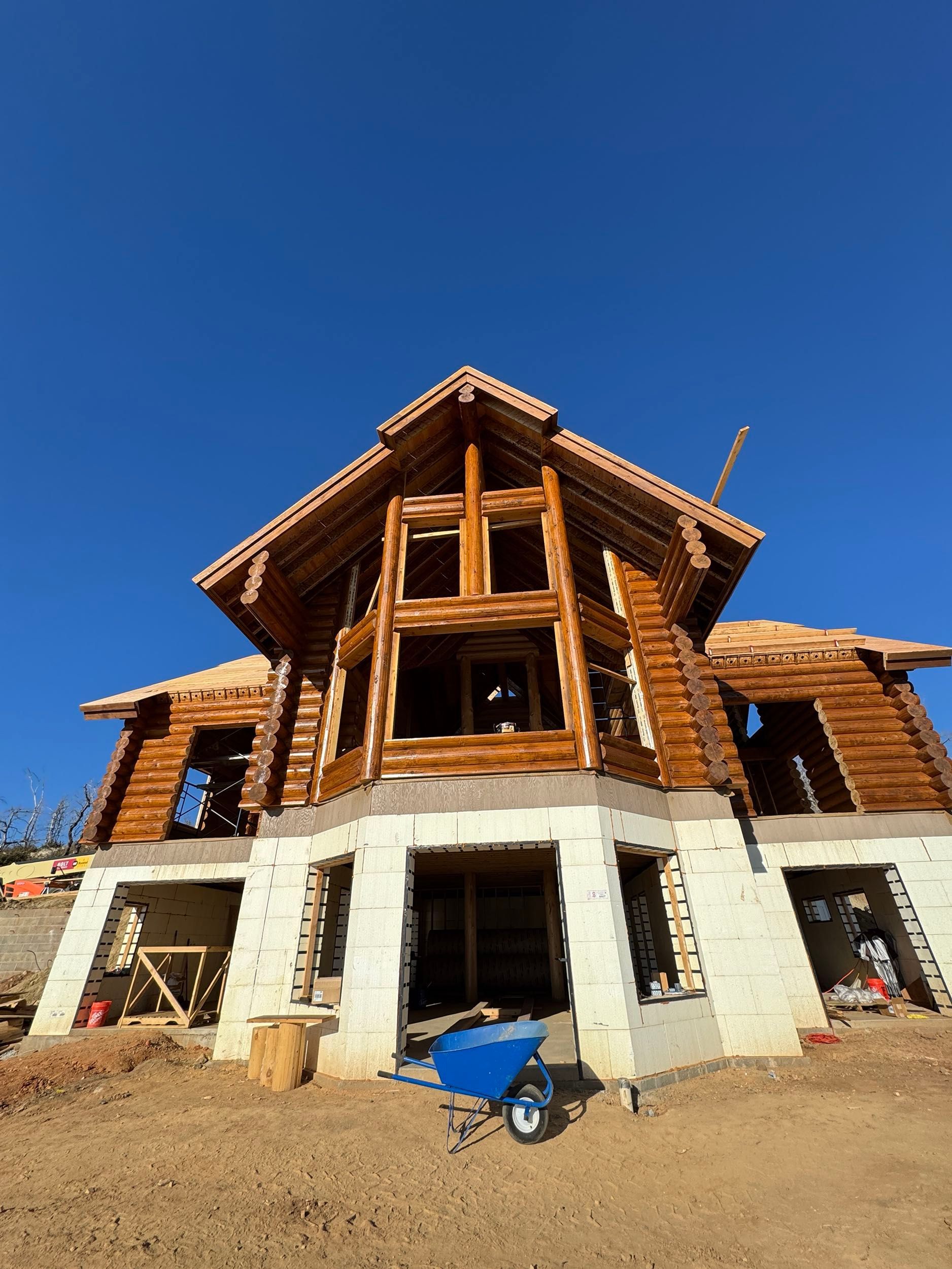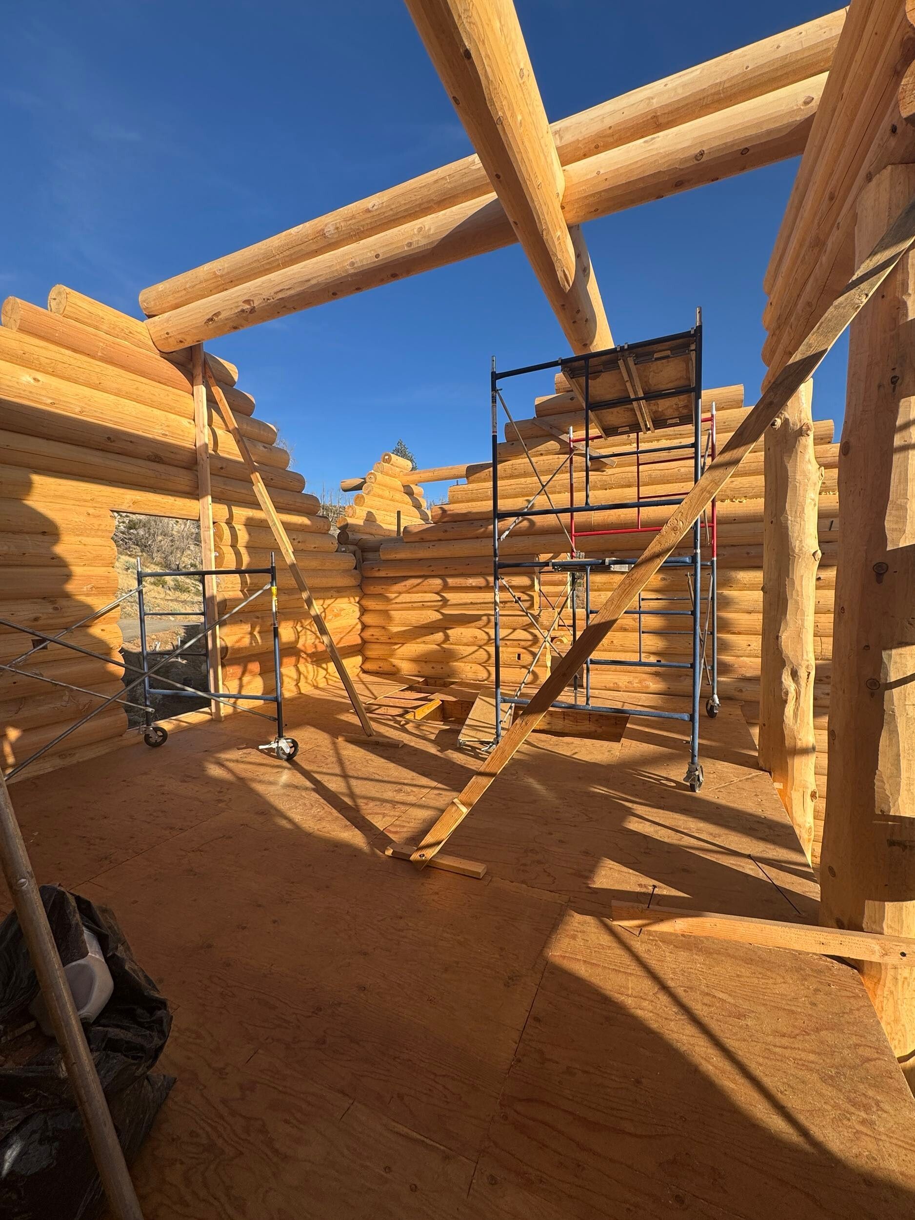 This project reflects consistent progress across multiple phases, with a strong focus on exterior finishing, interior detailing, and structural development. From staining and surface preparation to stair installation and chinking, each stage has been carefully executed to maintain quality and efficiency throughout the build.